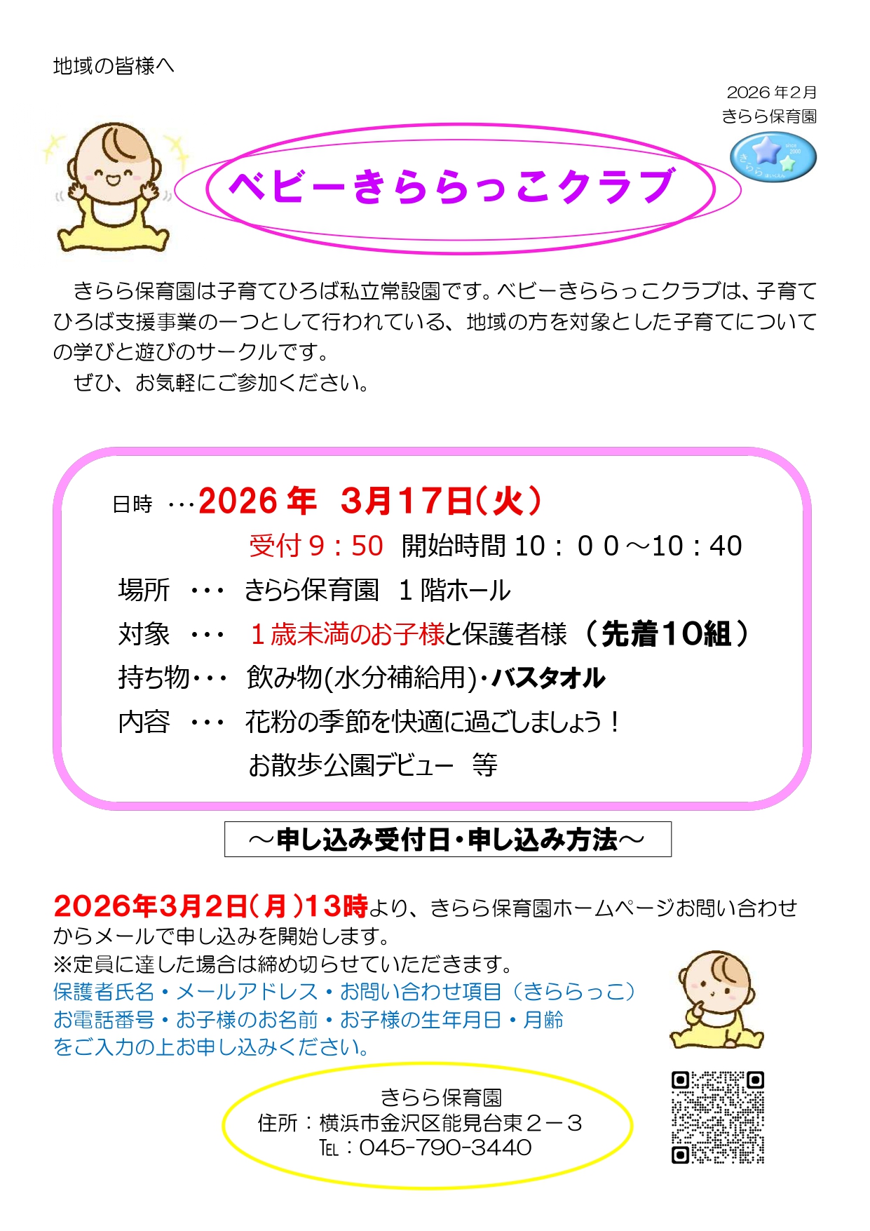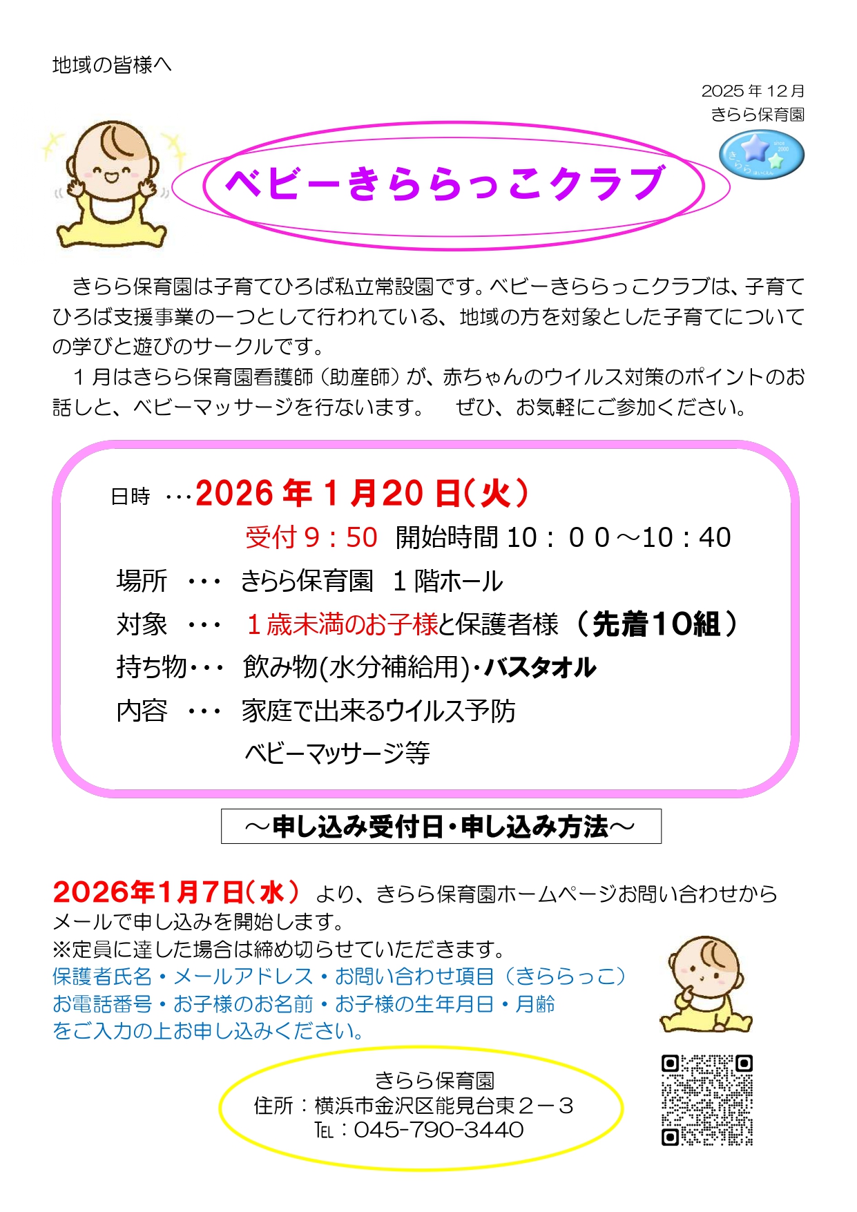 きらら保育園では、地域の皆様を対象とした、様々な子育て支援活動を行っています。