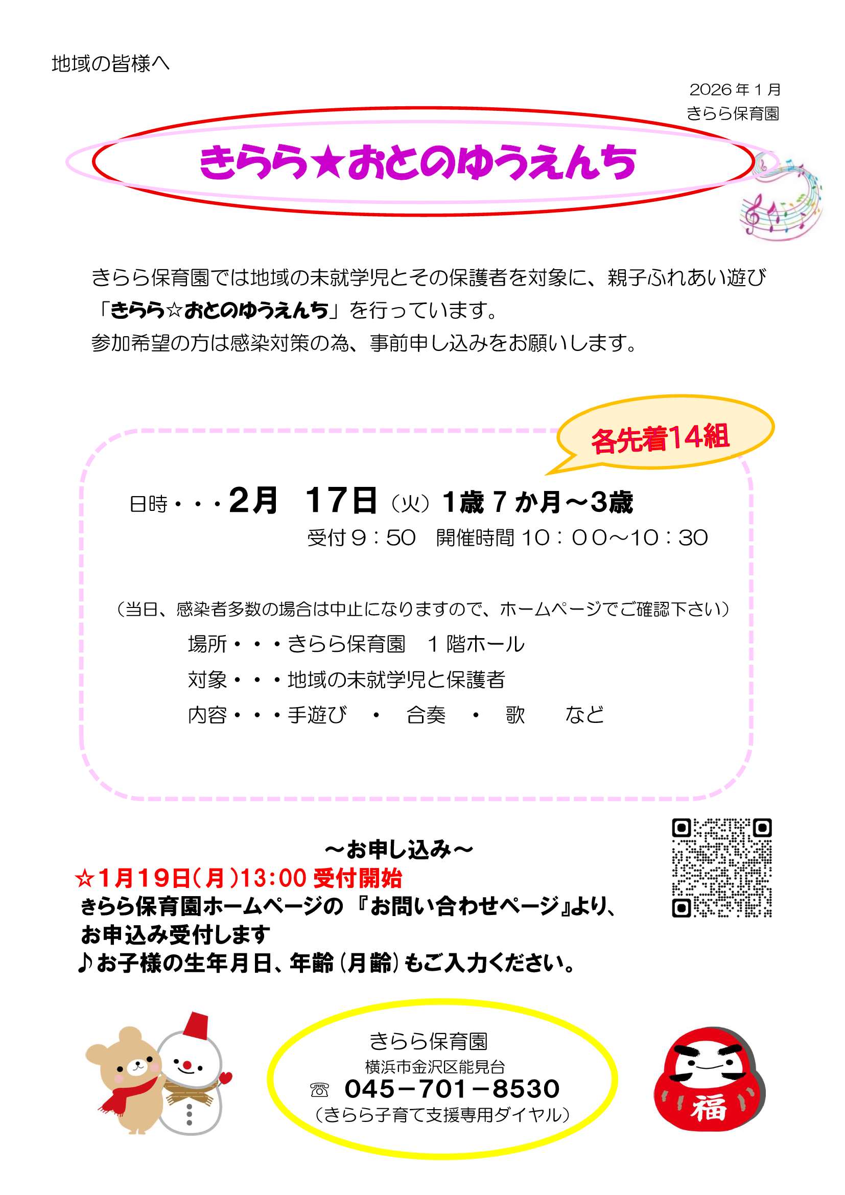↓2月4日(火)のおとのゆうえんちは、申込者多数によりキャンセル待ちとなっております。